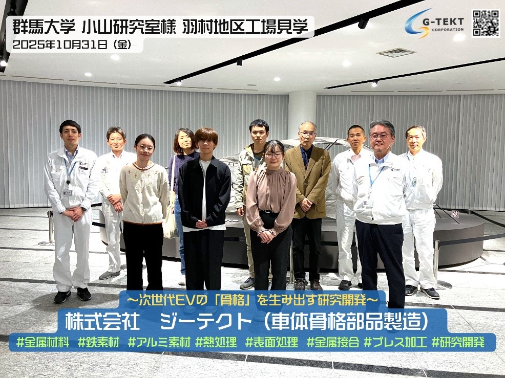 2025年10月31日、東京都羽村市にある株式会社ジーテクトの工場見学に、教員と学生6名で伺わせて頂きました。自動車用鋼板の塑性加工や溶接の最新技術を拝見し、技術力の高さに驚くばかりでした。